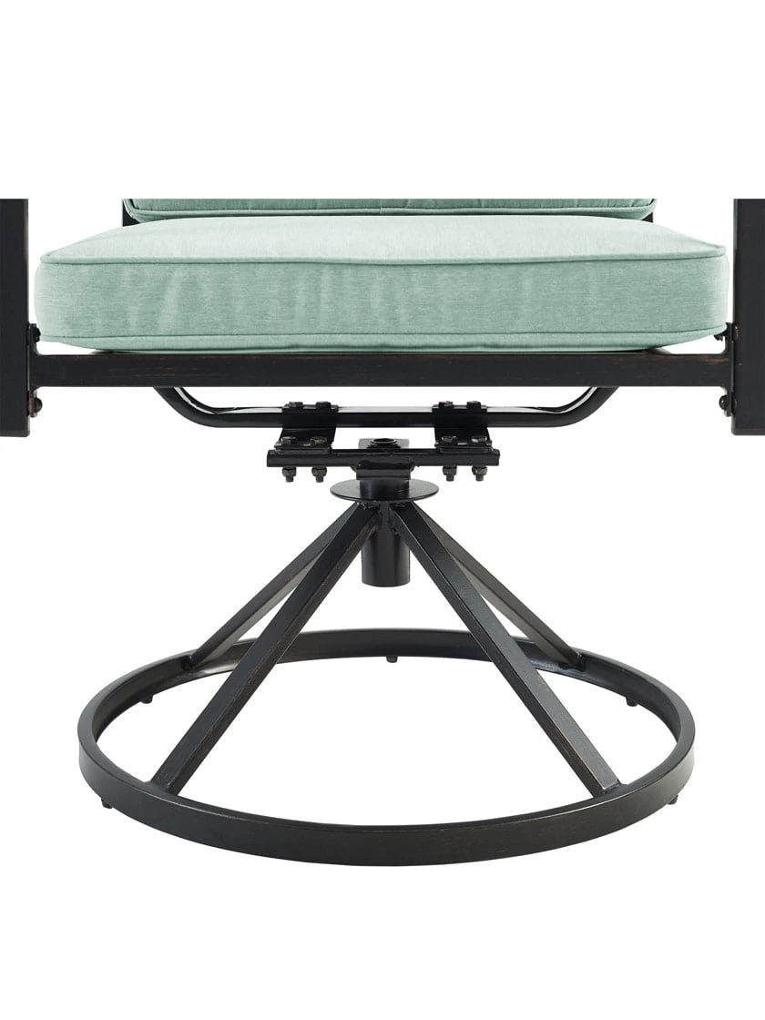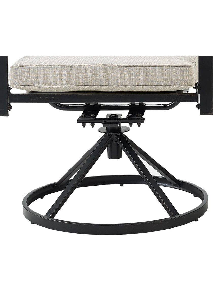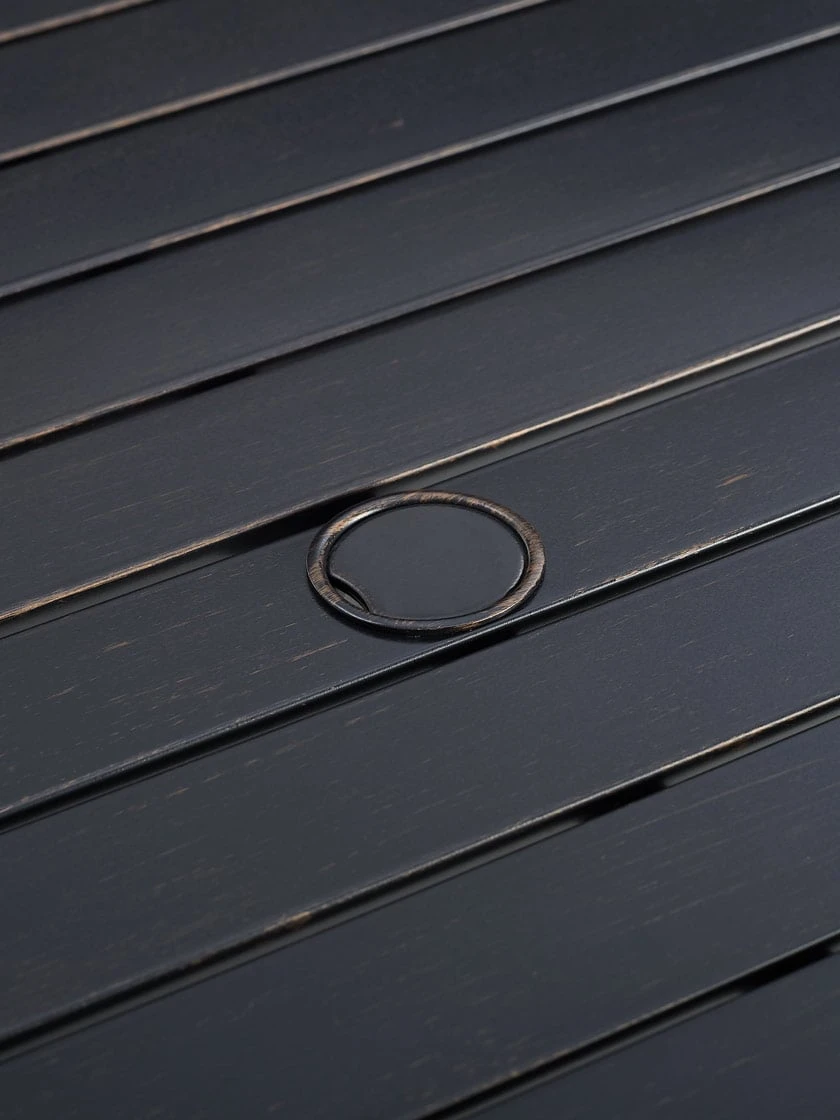 Gather around for a fun and fashionable outdoor meal with the Kaplan 5-Piece Outdoor Dining Set. Featuring a rectangle table with a slatted design that elevates the sturdy steel construction, creating a perfect partner to the four outdoor swivel dining chairs. Each chair showcases comfy back and seat cushions plus a classic x-back design and 360-degree swivel. The table’s standard umbrella hole will allow you to add some shade when dining on a hot summer day. Simple and stunning, this dining set will be a welcome addition to your outdoor entertaining.
